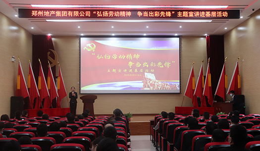 為進(jìn)一步深化市國資委“黨的創(chuàng)新理論萬場宣講進(jìn)基層”活動(dòng),培育和踐行社會(huì)主義核心價(jià)值觀,10月14日下午,鄭州地產(chǎn)集團(tuán)“弘揚(yáng)勞動(dòng)精神 爭當(dāng)出彩先鋒”主題宣講活動(dòng)在西流湖公司中原新區(qū)聯(lián)合黨委基層黨校成功舉辦。集團(tuán)宣講團(tuán)成員、西流湖公司黨支部、鄭地發(fā)展公司員工及中原新區(qū)項(xiàng)目參建單位代表共120余人參加活動(dòng)。
