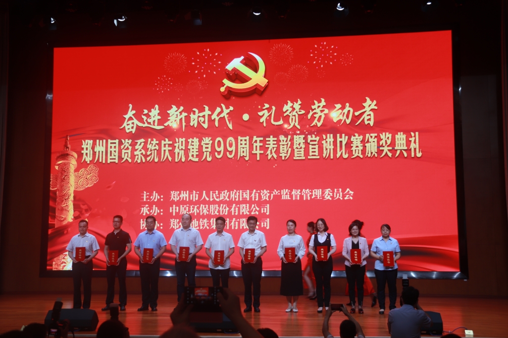 為慶祝中國共產(chǎn)黨成立99周年,重溫黨的光輝歷程,傳承黨的優(yōu)良傳統(tǒng),6月30日下午,鄭州市國資委舉行“奮進(jìn)新時(shí)代·禮贊勞動者”——鄭州國資系統(tǒng)慶祝建黨99周年表彰暨宣講比賽頒獎典禮,集團(tuán)黨委書記、董事長萬永生,監(jiān)事會主席李靜波,以及集團(tuán)優(yōu)秀基層黨組織、優(yōu)秀共產(chǎn)黨員、優(yōu)秀基層代表、獲獎節(jié)目代表等共計(jì)20余人參加此次頒獎典禮。
