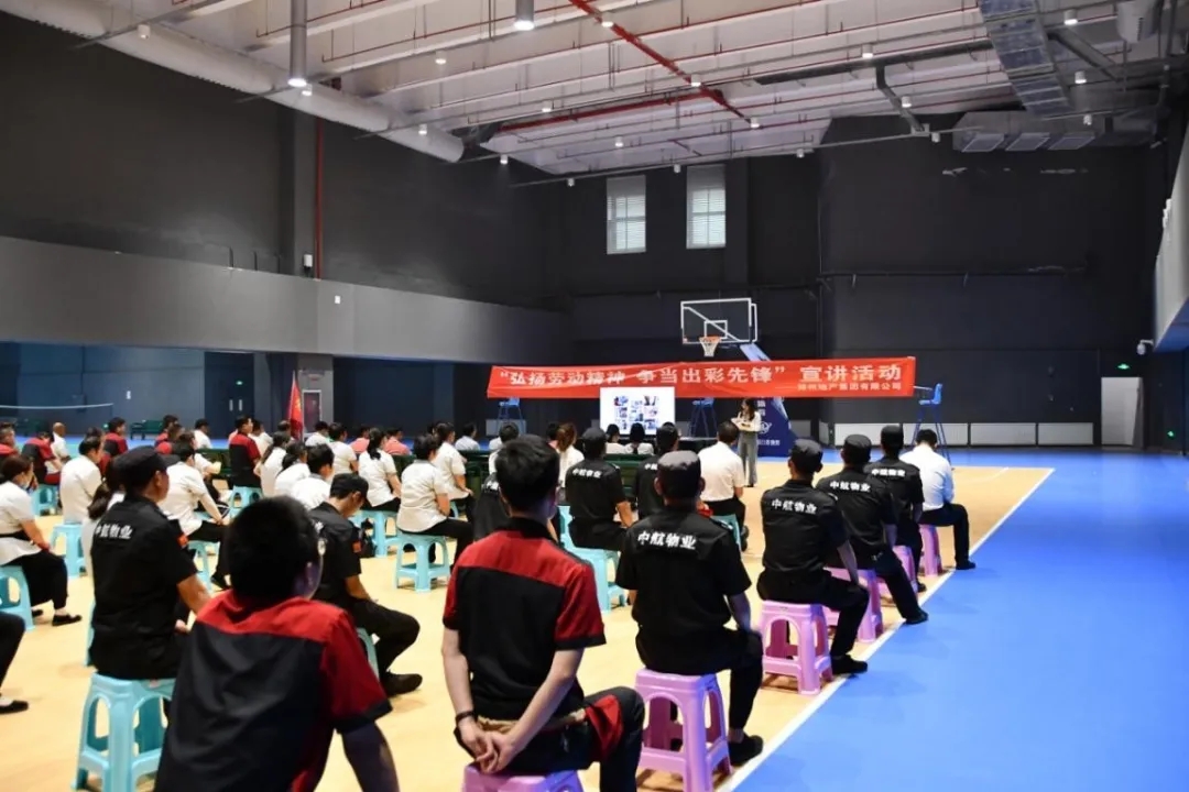 宣講團(tuán)第一組赴鄭地奧體公司在奧體中心綜合訓(xùn)練館展開(kāi)宣講,鄭地奧體、中航物業(yè)保潔及安保等一線員工共100余人參加了此次宣講活動(dòng)。來(lái)自黨群黨支部王曉婕、人力資源黨支部馬遠(yuǎn)俊、黃河兩岸公司黨支部吳林熹、都市開(kāi)發(fā)公司黨支部馮靜、投資管理公司黨支部范瑩,從學(xué)習(xí)貫徹習(xí)近平總書(shū)記重要回信精神、“講好黃河故事”、“ 絲路精神”和共筑中國(guó)夢(mèng)等方面,通過(guò)身邊人身邊事,以小見(jiàn)大,講述了一個(gè)個(gè)平凡而偉大的勞動(dòng)者的故事,號(hào)召全體黨員同志進(jìn)一步樹(shù)立勞動(dòng)觀念、弘揚(yáng)勞動(dòng)精神,爭(zhēng)做出彩鄭地人,以一流的業(yè)績(jī)和實(shí)際行動(dòng)擔(dān)當(dāng)重任,為集團(tuán)高質(zhì)量發(fā)展貢獻(xiàn)力量。