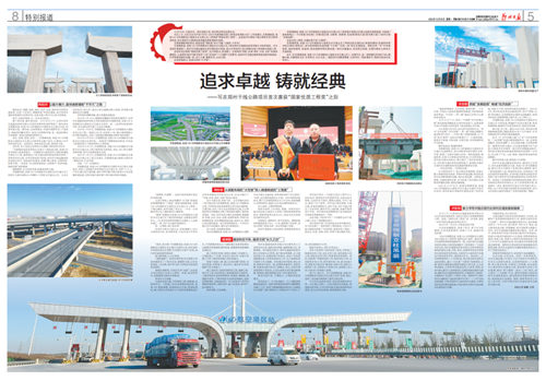 當(dāng)日上午,從在北京召開(kāi)的“2022—2023年度國(guó)家優(yōu)質(zhì)工程獎(jiǎng)總結(jié)表彰大會(huì)”上傳來(lái)喜訊,京港澳高速、省道102與四港聯(lián)動(dòng)大道組合式互通立交工程榮獲“國(guó)家優(yōu)質(zhì)工程獎(jiǎng)”。這是鄭州市國(guó)省干線公路項(xiàng)目首次獲得該獎(jiǎng)項(xiàng),標(biāo)志著我市公路建設(shè)高質(zhì)量發(fā)展取得新的突破。