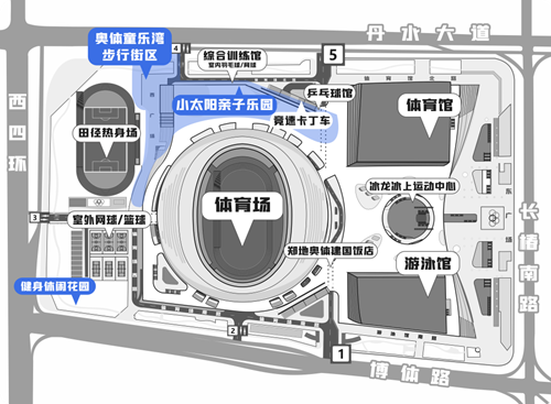 奧體童樂(lè)灣步行街區(qū)西鄰田徑訓(xùn)練場(chǎng),適合開(kāi)展足球、慢跑、飛盤等親子運(yùn)動(dòng),南側(cè)配備有“奧體便民共享便利店”和衛(wèi)生間,向東可直達(dá)體育場(chǎng)二層平臺(tái)的“小太陽(yáng)”網(wǎng)紅打卡地,不僅視野開(kāi)闊,能一覽各場(chǎng)館建筑風(fēng)貌,還配備了攀爬架、沙坑、秋千等兒童玩樂(lè)項(xiàng)目。