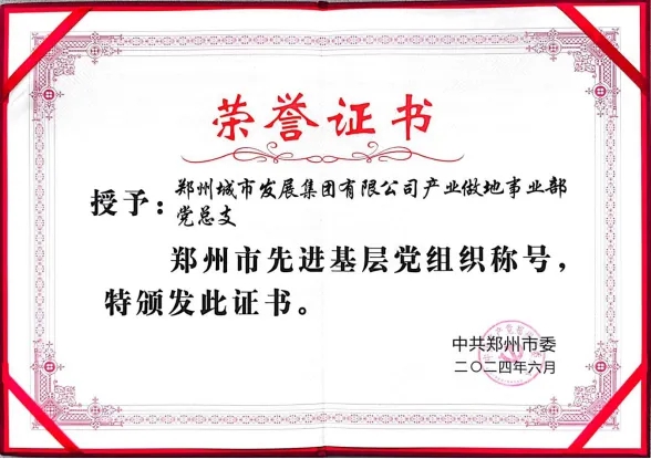 為慶祝中國共產黨成立103周年,6月27日,鄭州市“兩優(yōu)一先”表彰大會隆重舉行,大會對先進集體和個人進行了表彰。鄭州城發(fā)集團產業(yè)做地事業(yè)部黨總支被授予“鄭州市先進基層黨組織”榮譽稱號,事業(yè)部黨總支書記吉獻亮參加表彰大會。