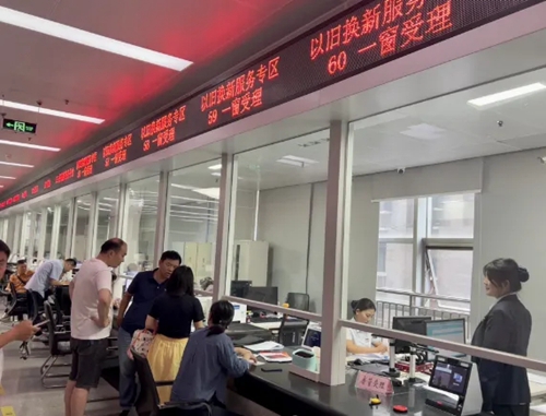 7月3日起,鄭州市住房保障和房地產(chǎn)管理局CBD大廳“以舊換新”專區(qū)正式開始開展業(yè)務(wù),設(shè)置4個(gè)服務(wù)專窗辦理“以舊換新”業(yè)務(wù)。同時(shí),為讓有“以舊換新”意愿的群眾少跑腿,房屋交易中心將服務(wù)延伸到企業(yè),在收購主體城發(fā)集團(tuán)設(shè)置“以舊換新”網(wǎng)簽專區(qū),開展“以舊換新”網(wǎng)簽備案等業(yè)務(wù)。