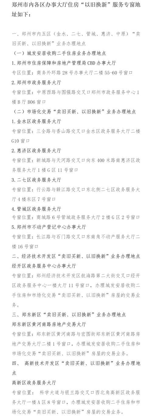 鄭州市內(nèi)8區(qū)10個(gè)辦事大廳全部開設(shè)住房“以舊換新”服務(wù)專窗