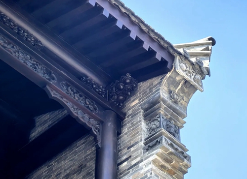 與之相對的17號樓主題為仙鶴,主題靈感來自于“仙鶴的故鄉(xiāng)”鶴壁。建筑上精美的墀頭也表達(dá)了此棟院子的主題,其上段位仙鶴,寓意松鶴延年,墀頭下端位仙鹿,寓意福祿綿長。而這處雕刻精美又涵義豐富的墀頭設(shè)計(jì)來源于河南鶴壁的古城摘星臺公園。