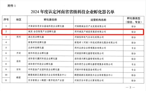 近日,河南省科學技術廳發(fā)布通知,公布2024年度河南省省級科技企業(yè)孵化器、河南省眾創(chuàng)空間的通知,經(jīng)推薦、專家評審、核查、廳長辦公會研究、公示等程序,同意城發(fā)·金岱智慧產(chǎn)業(yè)園等21家單位認定為河南省省級科技企業(yè)孵化器,同意河南應用技術職業(yè)學院眾創(chuàng)空間等33家單位備案為河南省眾創(chuàng)空間。