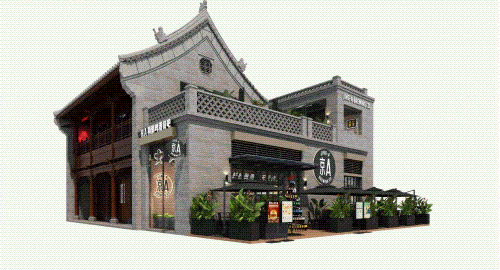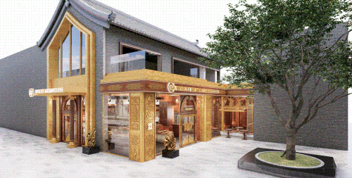 以COMMUNE幻師的門店設計為例——從效果圖可以看出,建筑外部以青灰色磚墻復刻商代建筑肌理,檐角神獸造型融入現(xiàn)代燈光設計,整體風格充滿著古樸與時尚。店內則以暖色調營造松弛感,酒墻擺滿了來自全球的精釀。每當味蕾觸碰到精釀的麥香,窗外同時飄入來自3600年前夯土的氣息——在這里,顧客喝的不是單純的酒,而是歷史與現(xiàn)代的奇妙敘事。