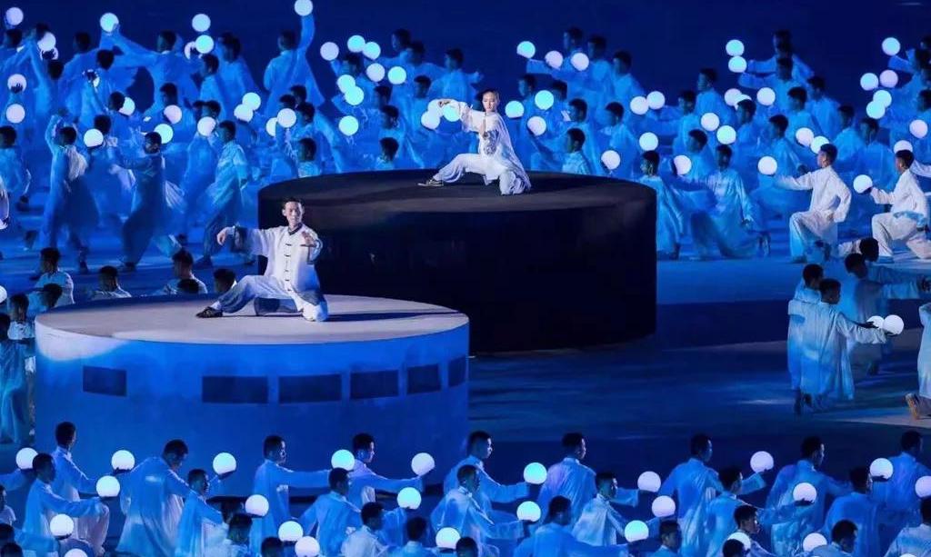 5塊總面積,超過(guò)3000平米的輕型透明網(wǎng)幕,130余臺(tái)高清投影機(jī)覆蓋上萬(wàn)平米場(chǎng)地,通過(guò)威亞的技術(shù)手段和地面投影相呼應(yīng)。地面、空中、立面多維度的表演空間,將各種特色民族元素呈現(xiàn)出來(lái),呈現(xiàn)了各族人民的幸福生活,書(shū)寫(xiě)出一張張民族文化名片。當(dāng)現(xiàn)場(chǎng)各族人民跳起歡快的舞蹈,當(dāng)各民族美麗的服飾在現(xiàn)場(chǎng)轉(zhuǎn)出最絢麗的弧度,展現(xiàn)出各民族團(tuán)結(jié)奮進(jìn)、朝氣蓬勃的精神風(fēng)貌。作為河南特色的少林和太極兩個(gè)重要元素也在本次開(kāi)幕式精彩亮相,由塔溝武校數(shù)千名演員演繹。隨著音樂(lè)節(jié)奏的轉(zhuǎn)換,他們變幻各種造型,動(dòng)靜結(jié)合、氣勢(shì)恢宏,讓觀眾更加了解精彩河南。