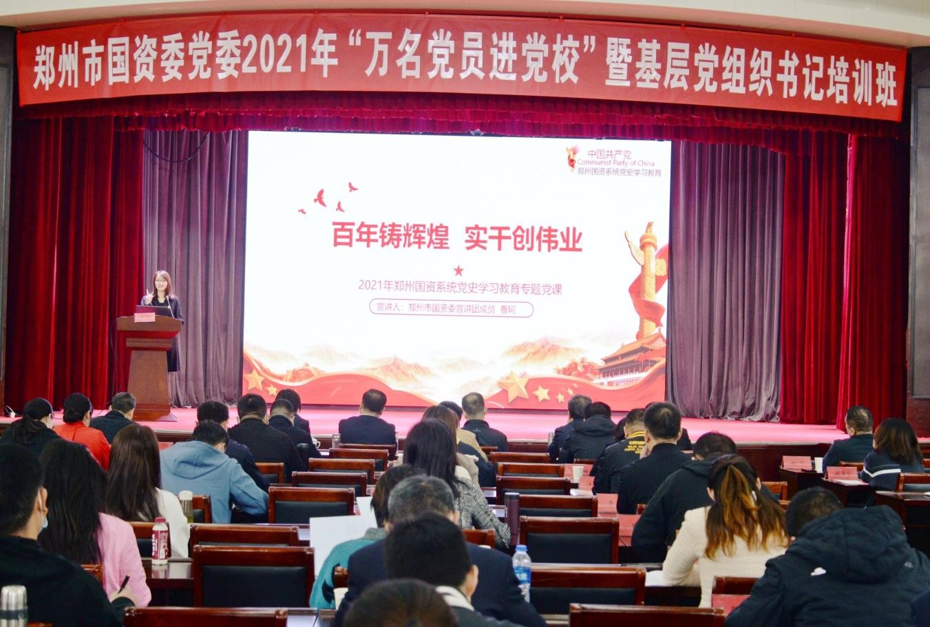 10月19日,鄭州市國(guó)資委黨委舉行2021年“萬(wàn)名黨員進(jìn)黨校”暨基層黨組織書(shū)記培訓(xùn)活動(dòng),鄭州地產(chǎn)集團(tuán)西流湖公司黨支部曹珂同志作為市國(guó)資委宣講團(tuán)成員,向市國(guó)資委黨委市管企業(yè)優(yōu)秀黨支部書(shū)記、優(yōu)秀共產(chǎn)黨員130余人進(jìn)行了以《百年鑄輝煌 實(shí)干創(chuàng)偉業(yè)》為主題的黨課宣講。