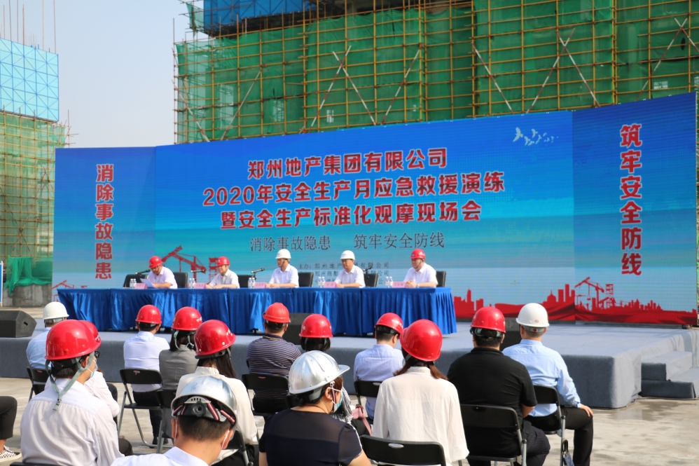 8點30分,董事長萬永生宣布 “鄭州地產集團2020年安全生產月應急救援演練活動開始”。