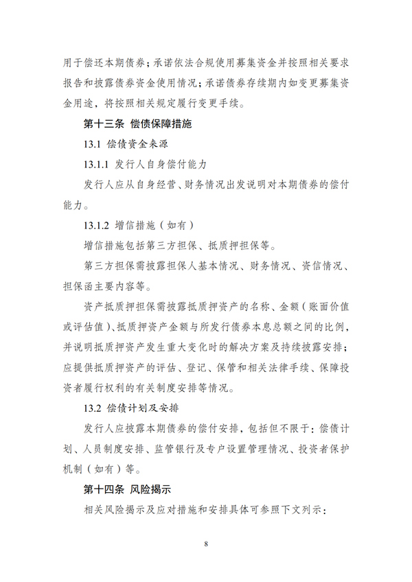 (二)發(fā)行人應(yīng)按照監(jiān)管部門和交易場所的規(guī)定,在存續(xù)期內(nèi)定期披露財(cái)務(wù)情況、經(jīng)營情況、募集資金使用情況、項(xiàng)目進(jìn)展情況等相關(guān)信息。如存續(xù)期內(nèi)變更募集資金用途或發(fā)生其他對債券持有人權(quán)益有重大影響的事項(xiàng),應(yīng)符合相關(guān)法律法規(guī)和政策要求,按照有關(guān)規(guī)定或約定履行程序,并及時公告。